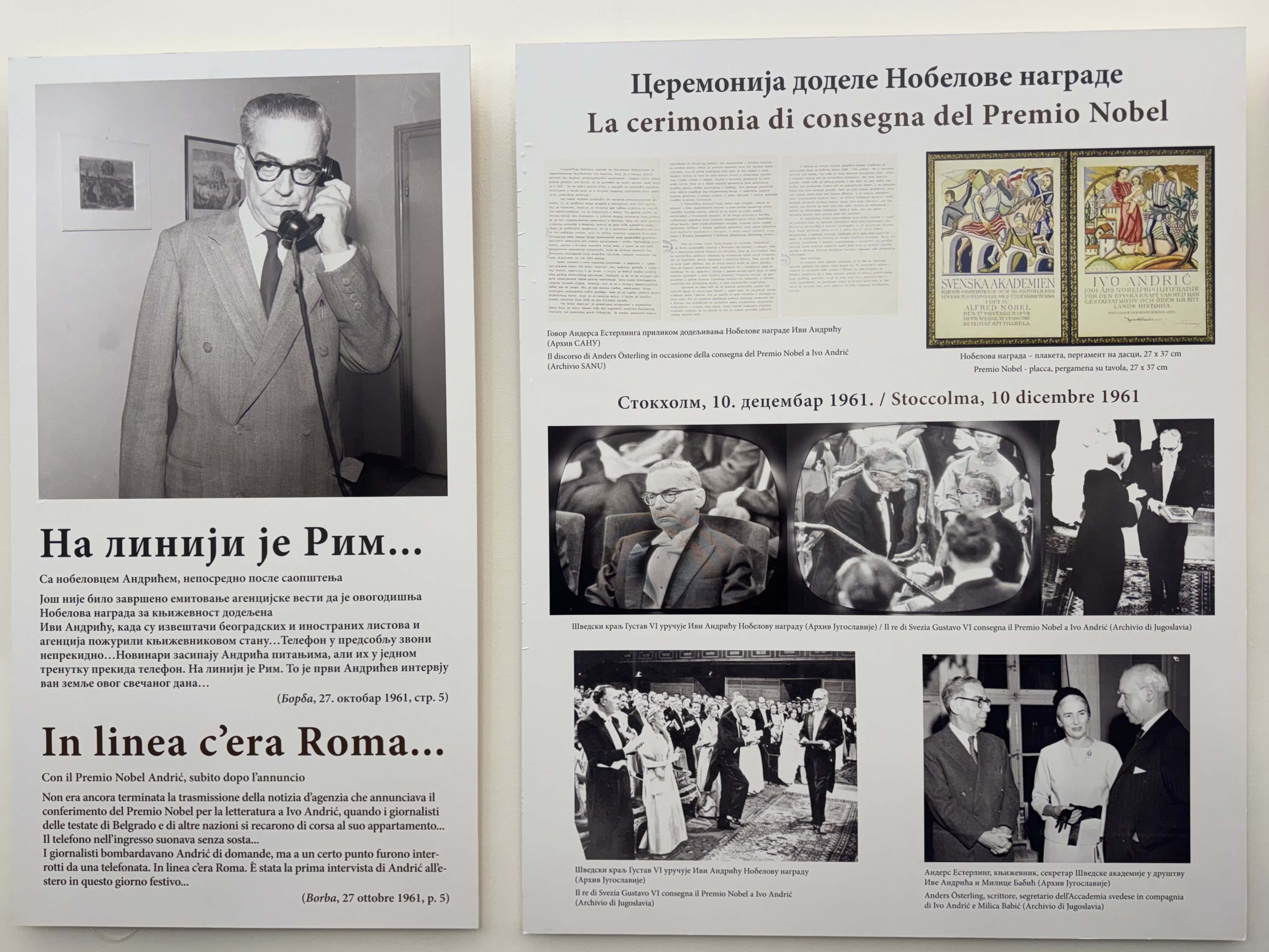 Министар културе Никола Селаковић отоворио је у Српској православној црквеној општини у Трсту двојезичну изложбу „Иво Андрић и Италија – документа“ (Ivo Andrić e l’Italia – documenti) уприличену поводом 50 година од смрти прослављеног књижевника.