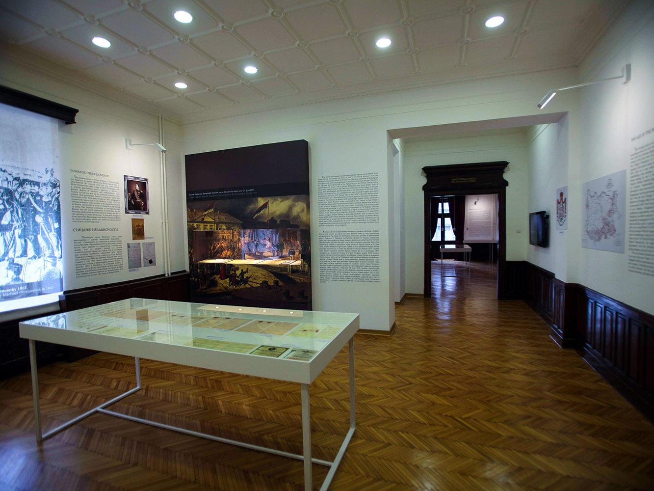 Архив Србије је за потребе изложбе припремио 107 докумената из периода Кнежевине и Краљевине Србије, међу којима су преписи хатишерифа из 1830. и 1833. године, устави из 1835, 1838, 1869. и 1888. године, Закон о устројству Књажеске канцеларије из 1839. којим се први пут уређују спољни послови, разне конвенције и уговори са страним државама. Истраживања и избор докумената су обавили Александар Марковић и др Мирослав Перишић. Аутор изложбене поставке је Озарија Марковић Лашић, а графички дизајнер изложбе Небојша Васиљевић.